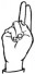 На ћирилици написано МИЛЕНА МАСНИКОСА састоји се из 15 слова [?]. Исписано ћириличном једноручном азбуком за глувонеме: